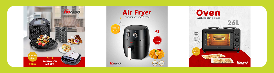 Компания KOZANO специализируемся на производстве кухонной утвари, соответствующей европейским стандартам качества. Продукция строго проверяется и сертифицирована по стандартам ISO9001 CE, GS, SAA, SASO, LFGB. Ассортимент KOZANO включает: сэндвичницы, вафельницы, грили, блинницы и многое другое. Кроме того, продукция имеет различные технические характеристики, элегантный внешний вид, оснащена передовыми технологиями и отличается высоким качеством. На выставке компания представит свои самые популярные товары: грили, сэндвичницы и другую продукцию.