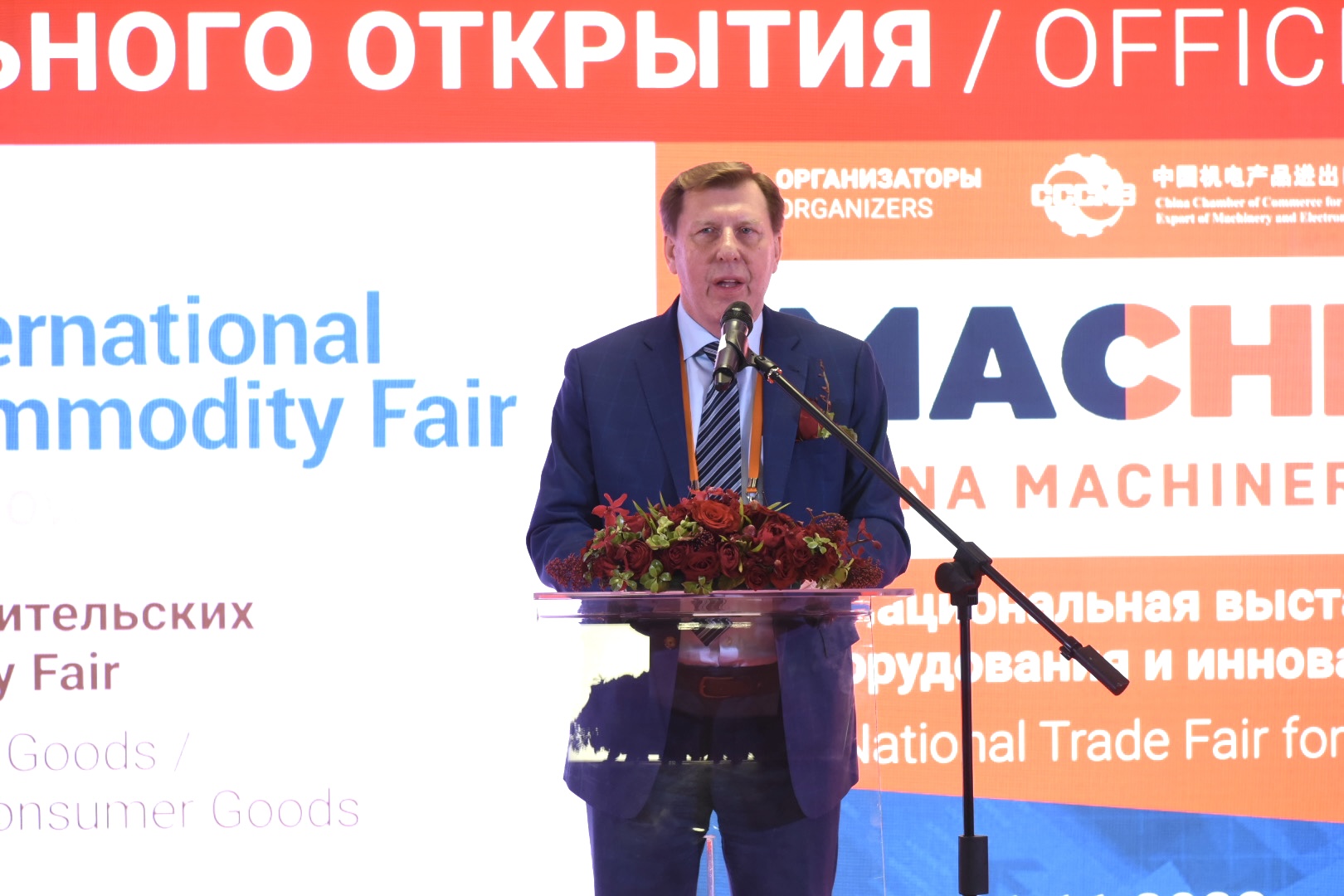 С приветствием выступили первый заместитель председателя Комитета Совета Федерации по международным делам Андрей Денисов, вице-президент Китайской торговой палаты по импорту и экспорту машинотехнического оборудования и электронной продукции (СССМЕ) Ши Юнхун и другие высокопоставленные гости.